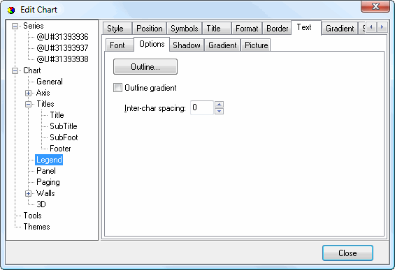 Font Series Color: turn this setting on to display the text for each item in the legend using the color of its item in the chart. With this turned off, the color specified in the Text subpage (discussed later) is used.