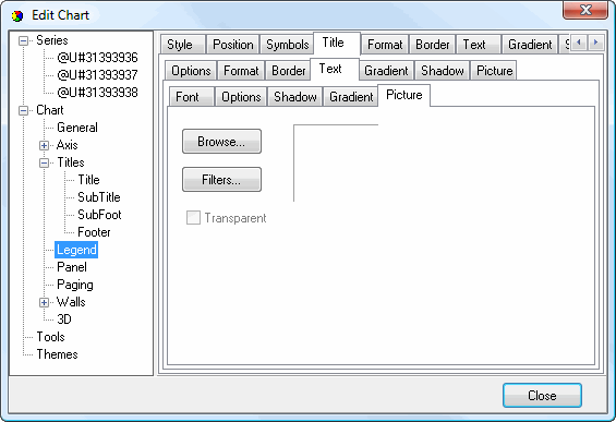 The Picture subpage of the Title subpage controls the picture for the legend title. It has the following options:
