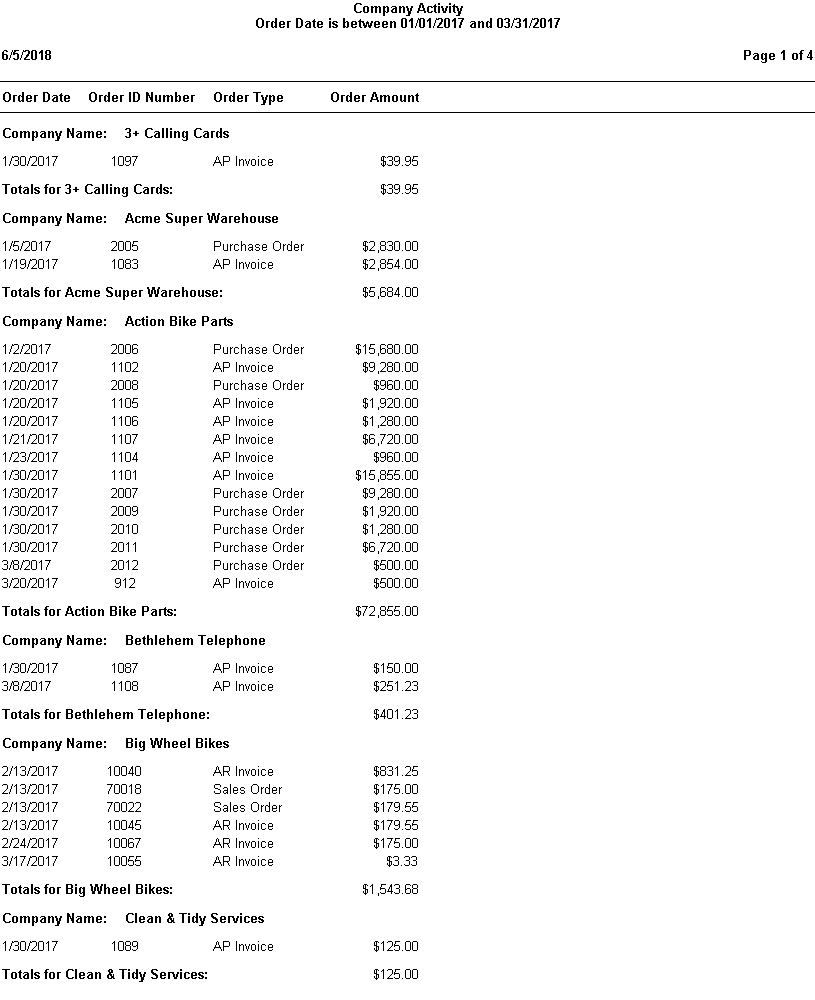 Drilldown Child - Company Activity: This report can be run on its own and will list Orders by Company or it can be run by running the "Company List - Drilldown Parent" report and clicking on a Company Name.