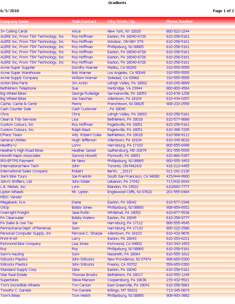Gradients: This report is a simple list of Companies but also shows how gradients can be used in templates.