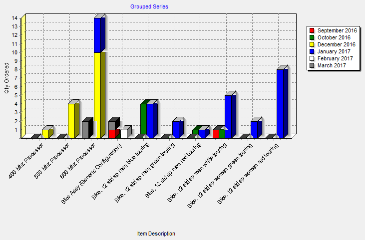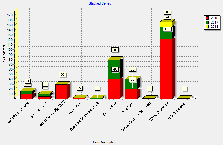 Stacked Chart with Two Value Fields: This report shows how you can create a stacked chart with two value fields and no series field.