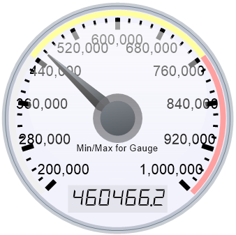 Min/Max for Gauge: This report shows how you can set the minimum and maximum values for a gauge.