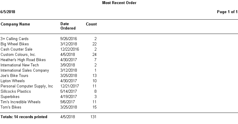 Most Recent Order: This uses the new highest summary type for date fields to show the most recent order for each customer