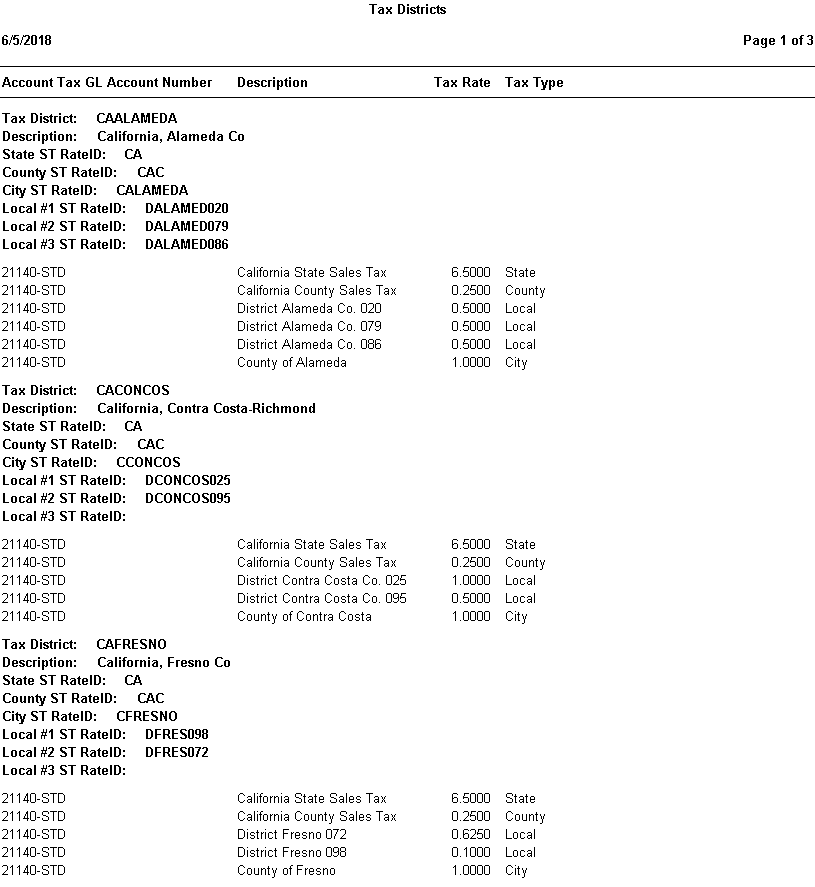 Tax Districts: This report breaks down Tax Rates by Tax district.