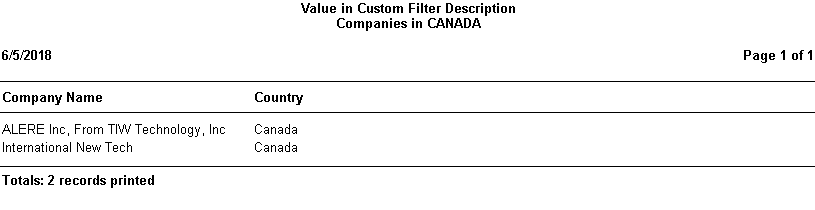 Value in Custom Filter Description: This report shows how the placeholder in the custom description of a filter condition displays the value entered by the user.
