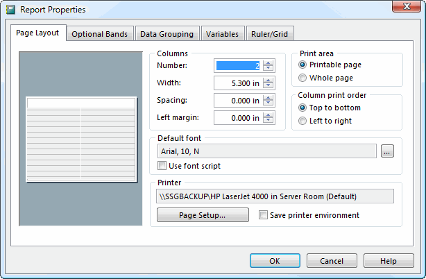 Now let's make it into a two-column layout. From the File menu, choose Page Setup. Change the number of columns to 2 and click OK. The report now looks like this: