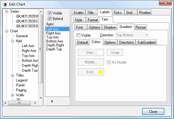 The Gradient subpage of the Text subpage of the Labels subpage has the same options as the Gradient Editor dialog.