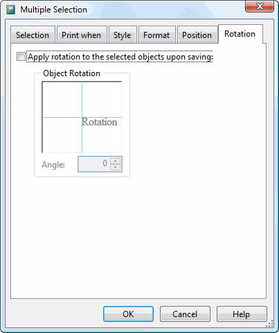 The Rotation page allows you to change the rotation for all selected objects; see the Field Object Properties topic for a description of rotation. Turn on the Apply rotation to the selected objects upon saving option to enable the options on this page. Any changes you make are applied to all selected objects.