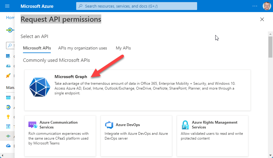 • In the Request API Permissions, Microsoft Graph page, click Delegated Permissions, then type "SMTP" in the Select Permission box to display the SMTP settings. Click the ">" beside SMTP to expand it, click in the SMTP.Send checkbox to turn it on, and click the Add Permissions button at the bottom.