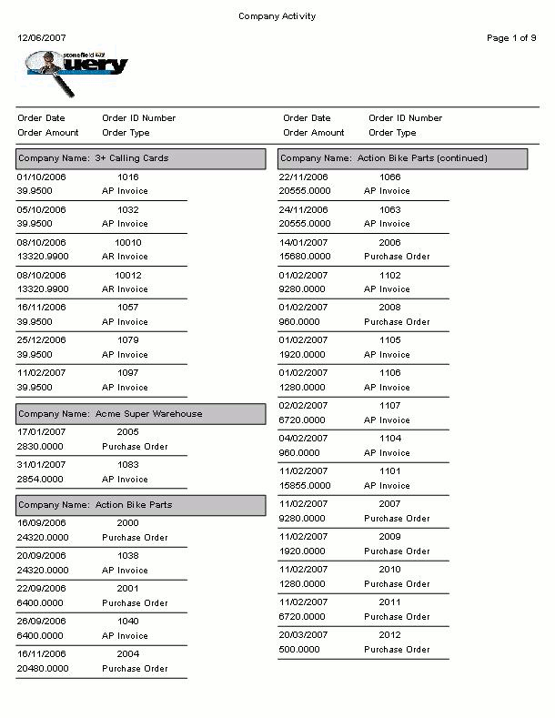 Choose Print Preview from the Report menu to view the report; it looks like this: