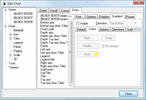 The Gradient subpage of the Fonts subpage has the same options as the Gradient Editor dialog.