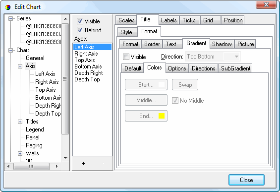 Visible: this option specifies whether any of the attributes of the axis, such as the labels, title, and gridlines, appear or not.