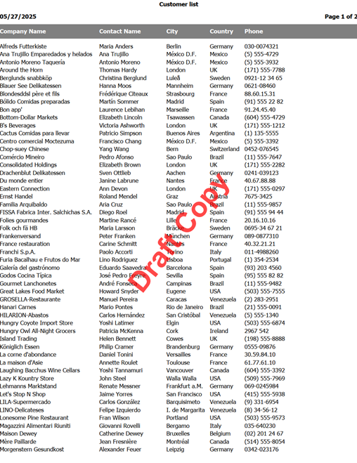 Having the Preview window open doesn't prevent you from doing other operations, such as previewing another report. If the Preview reports in tabbed pages setting in the Options dialog is turned on and the Preview window is already open, the report appears in another tab in the Preview window. If that setting is turned off, the report appears in a new Preview window. This means you can preview two different reports and put the Preview windows side-by-side or click on the report tabs to compare them. You can even run the same report a second time with different values for ask-at-runtime filter conditions, such as a different date range, and compare the two results.