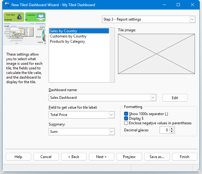 Step 3: Report Settings (Tiled Dashboard)